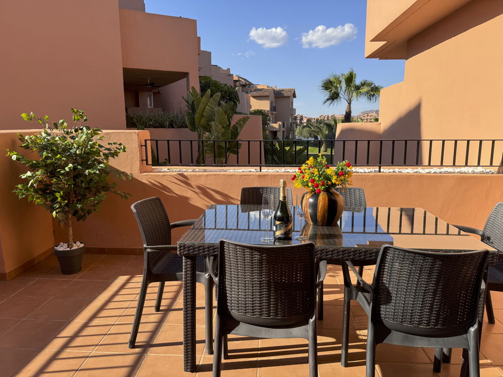 Welkom bij No.11011 gelegen op het prachtige Mar Menor Golf Resort op slechts 10 minuten van de kustplaats Los Alcazares. Bij binnenkomst in het appartement wordt u verwelkomd in de lichte en ruime woonruimte, die profiteert van een uitzicht op beide kanten van de tuinen, het zwembad en de golfbaan. Met twee grote terrassen, Zuid-West en Noord-West gelegen, biedt het appartement voldoende ruimte om buiten te eten en te zonnebaden, terwijl er altijd een schaduwplek is om even te pauzeren. Het appartement is geschikt voor twee volwassenen. In de ruime slaapkamer staan 2 eenpersoonsbedden, voldoende kastruimte en lades die veel …